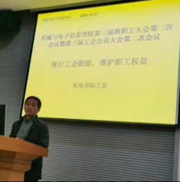 (XK星空体育工会高翟)2019年12月27日下午,XK星空体育第三届教职工大会第二次会议暨第三届工会会员大会第二次会议在教二楼301会堂隆重召开。校工会副主席于荣萍同志及XK星空体育全体教职工与会,会议由XK星空体育党委副书记于晓舟同志主持。