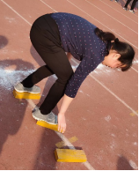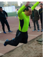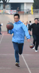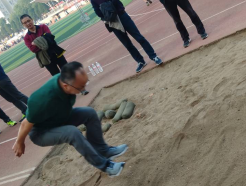 图3 XK星空体育教师代表在主席台宣誓 图4瞿祥华书记立定跳远比赛
