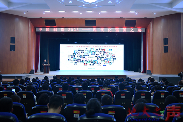 校长助理周爱国教授主持报告会并致辞。他强调,青年学生是祖国的未来,是中国梦的追梦者和圆梦人,也是我国制造业未来的希望。他鼓励同学们要扎实学习理论知识,积极参加科技创新活动,不断提高对“中国制造2025”发展战略的兴趣和认知能力,增强科学素养,早日实现中华民族的伟大复兴。